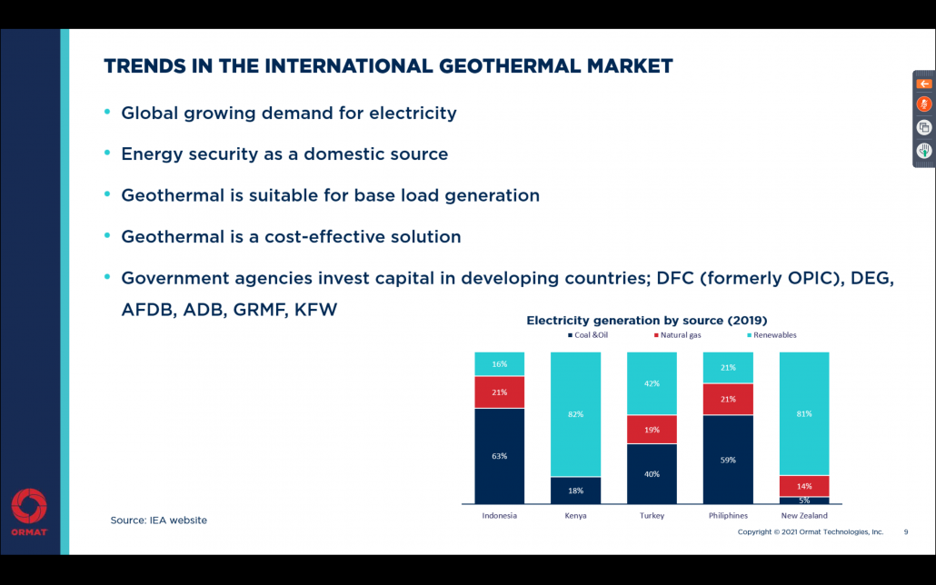 Top that occasion, the board invited Gad Shoshan (chairman at the board at the Israel-Turkey business council and chamber of commerce and managing director at Ormat Inc.) to discuss the current state of play. Ormat is a global renewable energy provider based in Reno (Nevada). The company has the particularity to be verse in multiple renewable energy sources (geothermal and recovered energy) as well as energy storage. In addition, with regards to geothermal, they managed to vertically integrate all phases of geothermal (Development, exploration, drilling, engineering, manufacturing, construction, operation and stakeholder management).