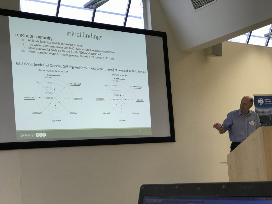The 3rd CHPM2030 consortium meeting was hosted by the British Geological Survey on the 28th and 29th of March in Keyworth, England. The objective of the meeting was to share and discuss recent developments in Work Package (WP) 2 – Laboratory experiments and orebody investigations, and WP3 – Metal recovery and electrochemical power generation. The meeting also provided opportunity to discuss project management issues, dissemination activities, recap the completed WP1 – Methodology framework definition, and take a glimpse at the upcoming WP4 – Systems integration, WP5 – Integrated sustainability assessment and WP6 – Roadmapping and Preparation for Pilots,
