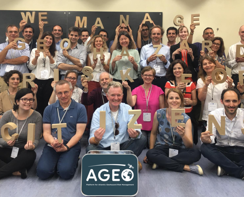 La région atlantique est exposée à des risques qualifié de “basse probabilité / grand impact “ ainsi qu’à une multitude de risques sismiques qui, dûs à leur faible probabilité d’occurrence et les forts coûts de préparation requis résultent en un manque de préparation pour une surveillance efficace. AGEO a pour objectif de mener un nouveau type d’engagement entre les communautés et les autorités locales pour la construction de bâtiments répondant aux risques sismiques. AGEO envisage également l’usage local des équipements et services d’observation de la Terre fourni par l’Union européenne, dont notamment la plateforme COPERNICUS. Le projet encourage un usage efficace de COPERNICUS mais aussi de bases de données plus régionales.