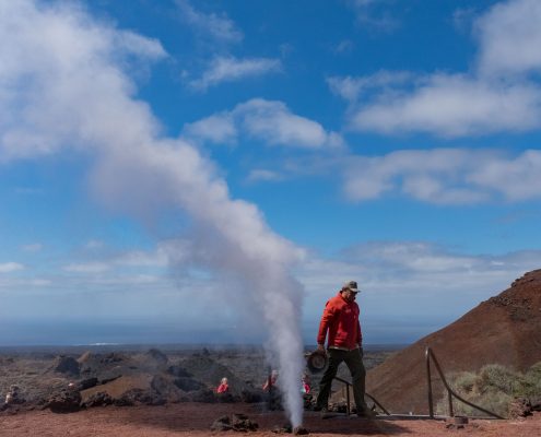 The CHPM2030 Lanzarote meeting closed with a field trip to Timanfaya National Park, where the partners had a guided tour and learned about the formation and volcanic structures of the park. The eruption started in 1730 and lasted for 6 years – with 100 active volcanoes covering 50 km2! Even though the eruption was almost 3 centuries ago, the volcanic rocks are fresh, due to the arid climate and therefore the lack of chemical/physical weathering. This makes them the perfect place for a geological lesson!