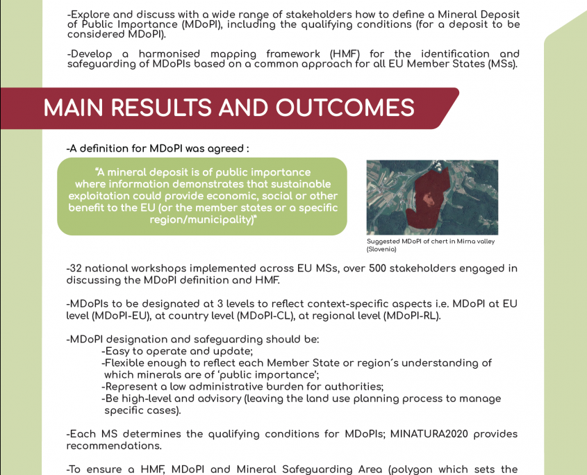 The Horizon2020 Minatura 2020 project oficially finished on the 31st of January. After three years, the project consortium was able to delineate and start discussions around a very important topic: land-use planning for geological resources with the definition of  MDoPI – Mineral Deposits of Public Importance.