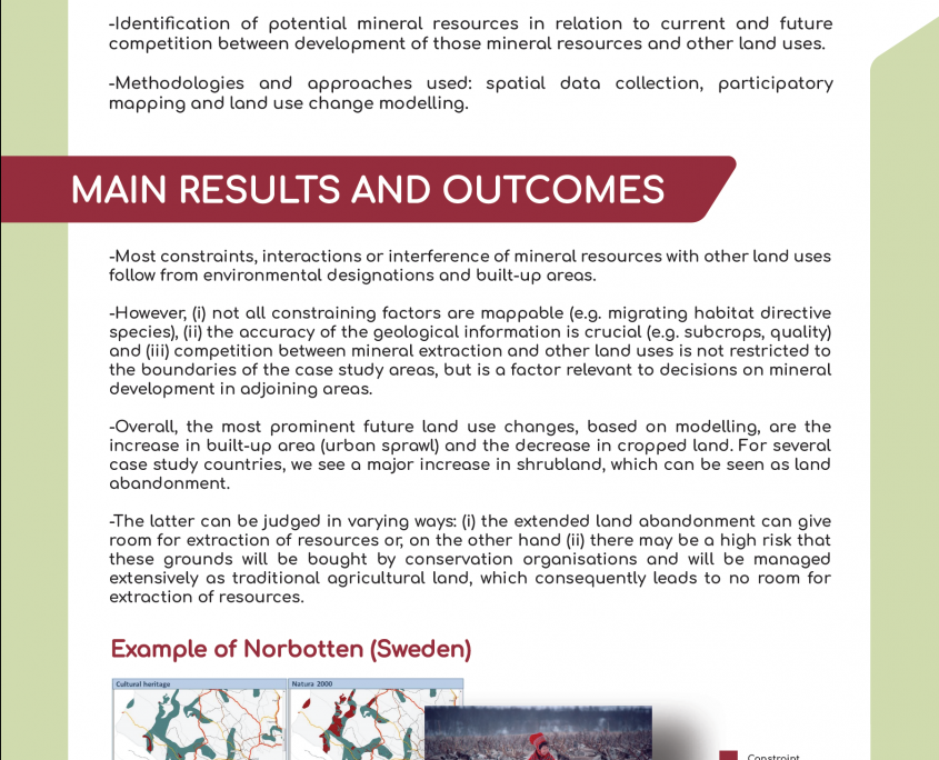 WP1: Land use assessment – First, it was necessary to understand what are and what will be the sources of conflict between mining and other land uses (agriculture, hunting, etc.). This work was done based on existing methodologies and approaches at EU and national level.