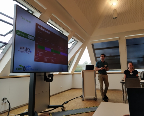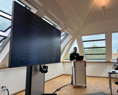 On the second day of meetings, LPRC led presentations on the Market Deployment task. This task focuses on bridging the technology used in CRM-geothermal with the market. It is a complex task that involves technological issues, political settings, environmental concerns, and social aspects of combined CRM and geothermal energy extraction. As the task is just beginning, the presentation involved discussing strategies and target audiences to build solid business plans and a market deployment strategy with all partners. This task is part of WP4: Deployment of the combined extraction of CRM and energy from geothermal fluids. Other WPs included 3: Development and optimisation of extraction technologies for CRM from geothermal brines and 5: Testing, validation, integration (of design requirements, systems and components).