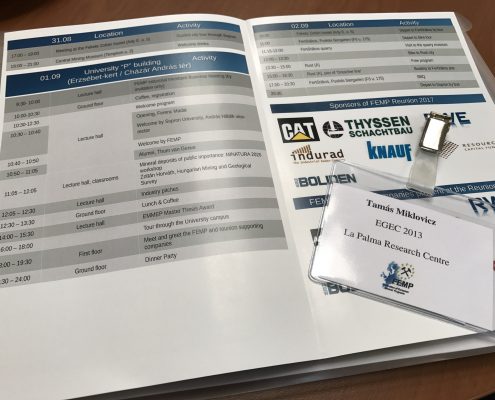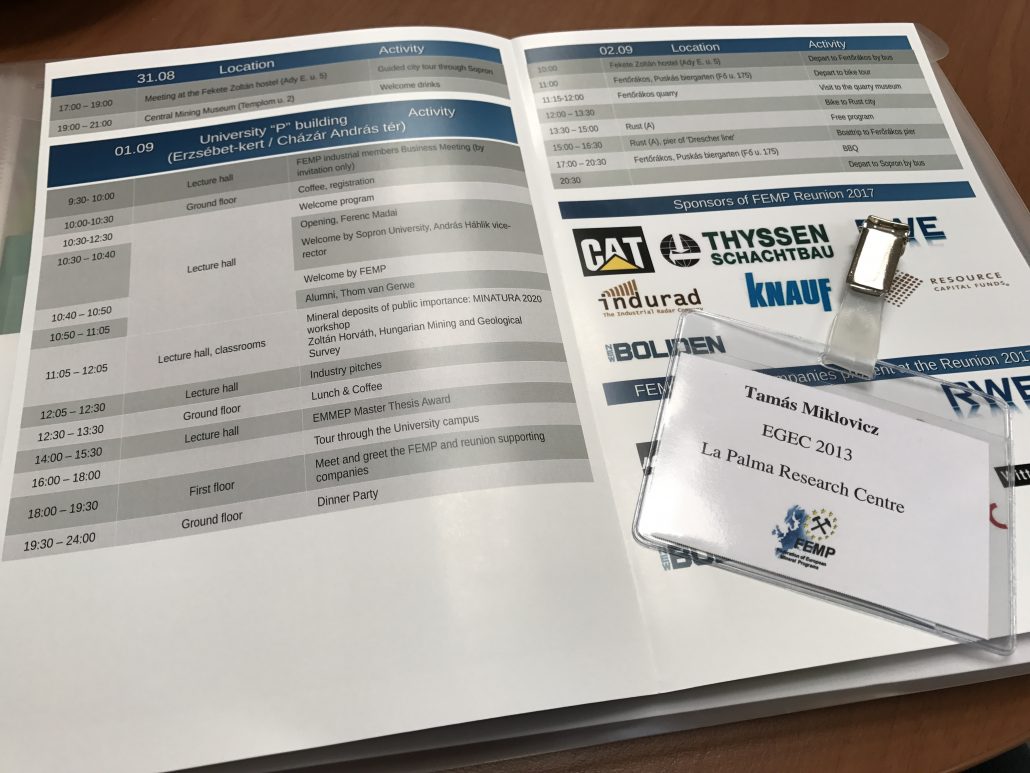 The Federation of European Mineral Programs (FEMP) annual reunion took place in Sopron, Hungary, organized by the University of Miskolc. FEMP organizes and co-ordinates the European Mining, Minerals a nd Environmental Program (EMMEP) for students in Resource Engineering, Mining and Geotechnical Engineering, Mineral Processing, Recycling and related academic studies. Tamás Miklovicz, as a former student of the European Geotechnical Environmental Course (EGEC), organized by FEMP, participated in the event. Every year a reunion is organized to gather former students, academics and industry rep resentatives for an informal weekend with networking and interesting events