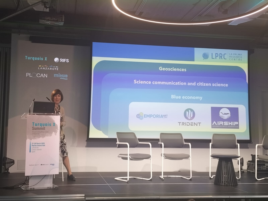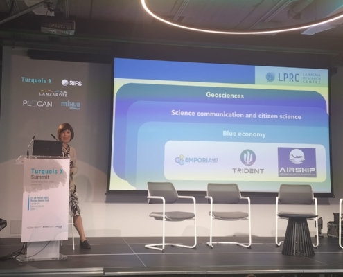LPRC participated in the session “vertical & autonomous mobility for ocean use” together with the president of the Aeronautical and Aerospace Cluster of the Canary Islands, José Luis García, the CEO of Speeder Systems, Erdem Kazakli, and the CEO of DroneMasters, Frank Wernecke. After describing the LPRC’s working areas, Laia d’Armengol presented two current projects in blue economy, TRIDENT – Technology based impact assessment tool foR sustaInable, transparent Deep sEa miNing exploraTion and exploitation, and AIRSHIP – Autonomous Flying Ships for Inter-Island and Inland Waters Transport.