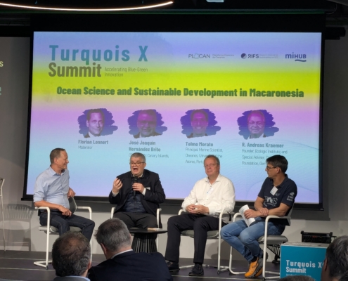 The Turquois X Summit was celebrated on the 27th and 28th March in the Marina Innova Hub installations of the island of Lanzarote, in the Canary Islands. The event gathered blue-green economy experts, innovators and change-makers from around the world to present and discuss solutions to accelerate blue-green innovation. The organiser, Florian Lennert, who was awarded as Klaus Töpfer Fellow from the German Research Institute for Sustainability (RIFS), stressed the key location of Lanzarote, and the whole Canary and Macaronesian islands, as social-ecological corridors connecting three continents in terms of biodiversity production and human activities such as transportation of goods and energy.
