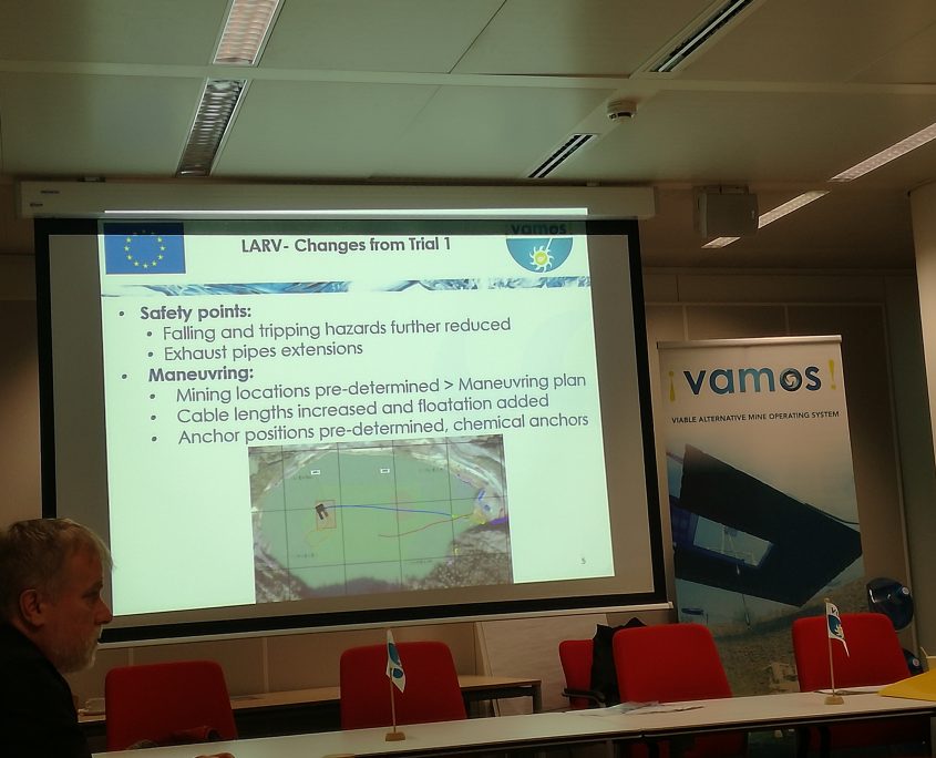 The ¡VAMOS! project has designed and built a robotic, underwater mining prototype with associated launch and recovery equipment. The system was extensively tested on two European sites: the Lee Moor mine, UK, and at SIlvermines, Ireland, with positive results.