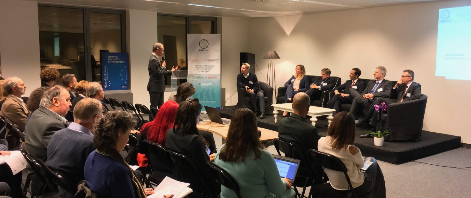 During the FORAM Public Launch on Tuesday evening, Mathias Schluep (WRFA) gave a concise overview of the project, which was then followed by a panel discussion. Amid an active discussion with the audience, panel members Ruediger Kuehr (UNU), Marcin Sadowski (EASME), Luca Demicheli (EGS), Vitor Correia (EFG), and Mathias Schluep (WRFA) debated obstacles, trends, opportunities, challenges, and initiatives within the world of raw materials.