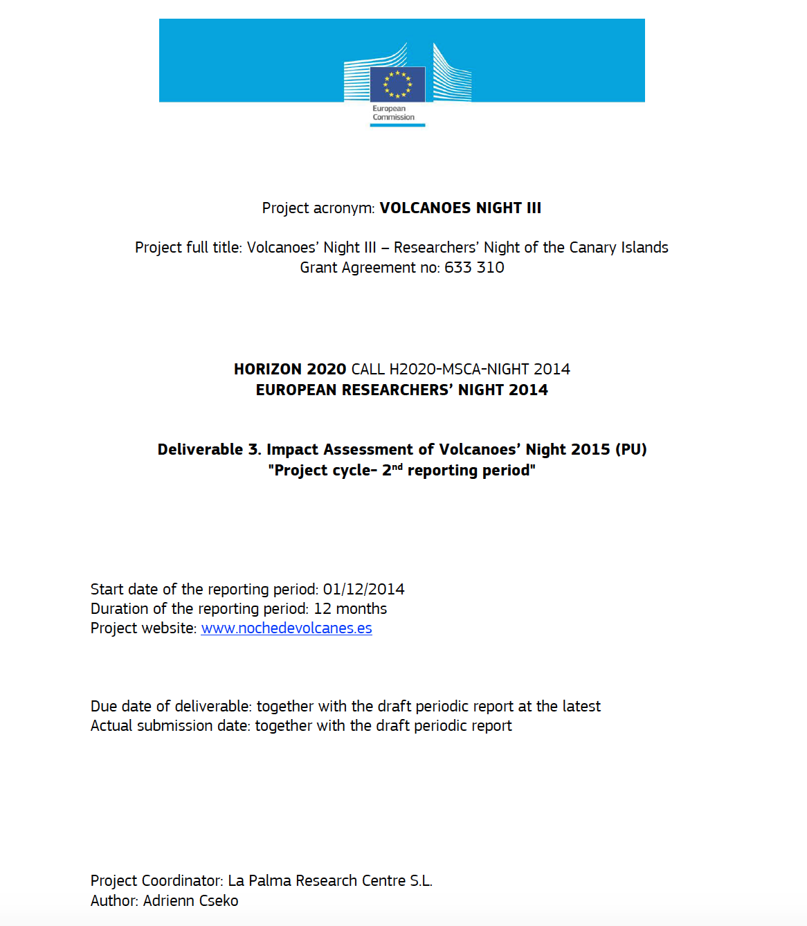 The objectives this report is to assess the impact of the work performed throughout 2015 (12 months), during the awareness raising campaign as well as related to the activities carried out at the Night itself, in quantitative and qualitative terms. Success was evaluated against the expectations (organisers, EU, public) with the overall long-term purpose of identifying the types of promotional methods and actions that proved to be the most effective towards the achievements of the project objectives.