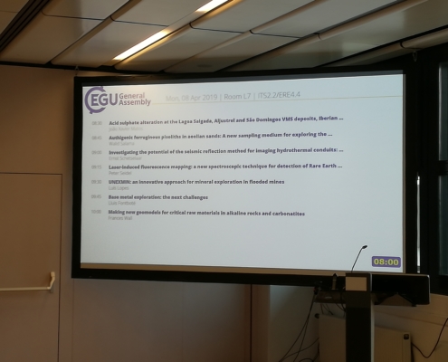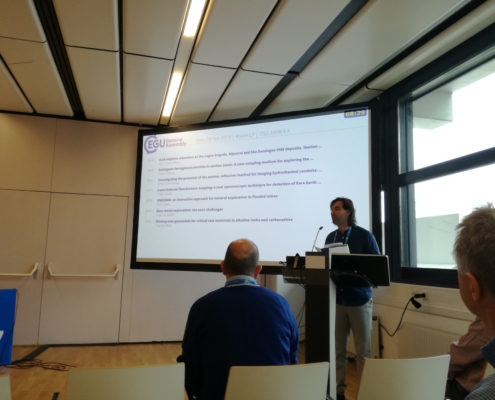 The UNEXMIN project was presented by LPRC’s member Luís Lopes during this year’s EGU General Assembly meeting, held in Vienna, between the 7th and 12th of April. The overview of the current and future state of the project was presented to a geoscientists audience, interested in the future state of the mineral exploration sector.
